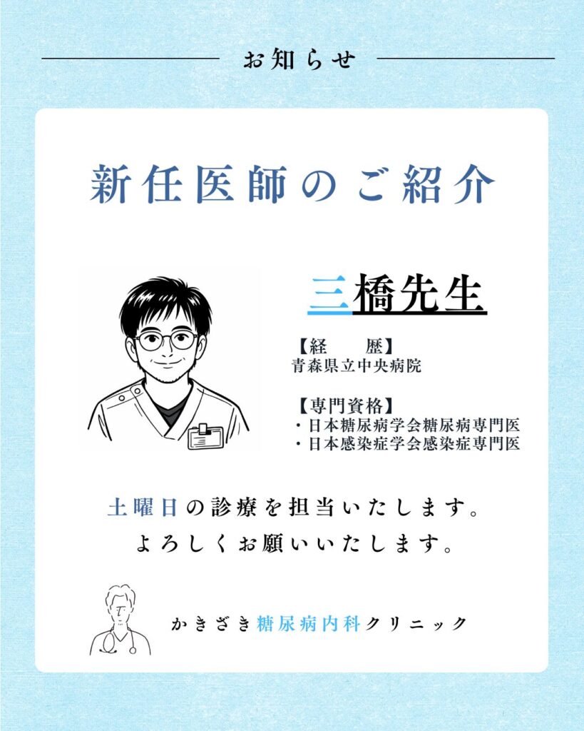 今月から新任医師(非常勤)の三橋先生をお迎えし、新体制での診療を開始することとなりました。